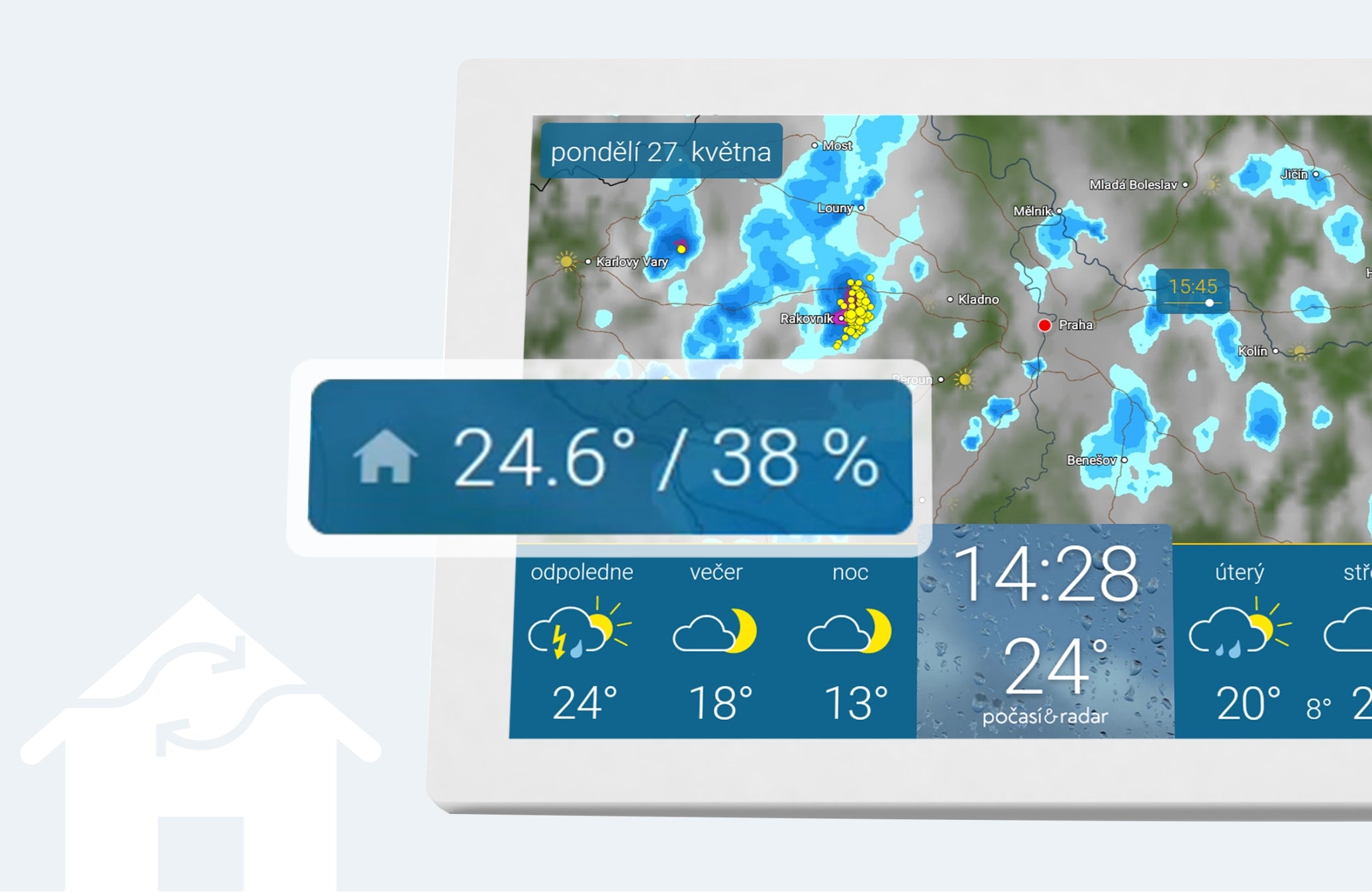 Meteodisplej počasí & radar home je více než jen meteostanice. Díky možnosti individuálního zobrazení, automatické aktualizaci údajů o počasí a updatu softwaru je jeho každodenní používání zcela pohodové. Počasí budete mít k dispozici na první pohled, což vám ulehčí plánování vašeho dne.