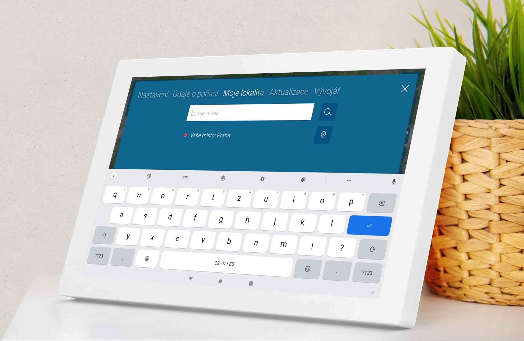 Po spuštění meteodispleje do provozu se automaticky spustí nastavení Wi-Fi. Stačí kliknout na vlastní síť Wi-Fi, zadat klíč Wi-Fi a je hotovo. Pokud chcete použitou síť Wi-Fi změnit, je to možné v nastavení pod položkou nabídky Wi-Fi.