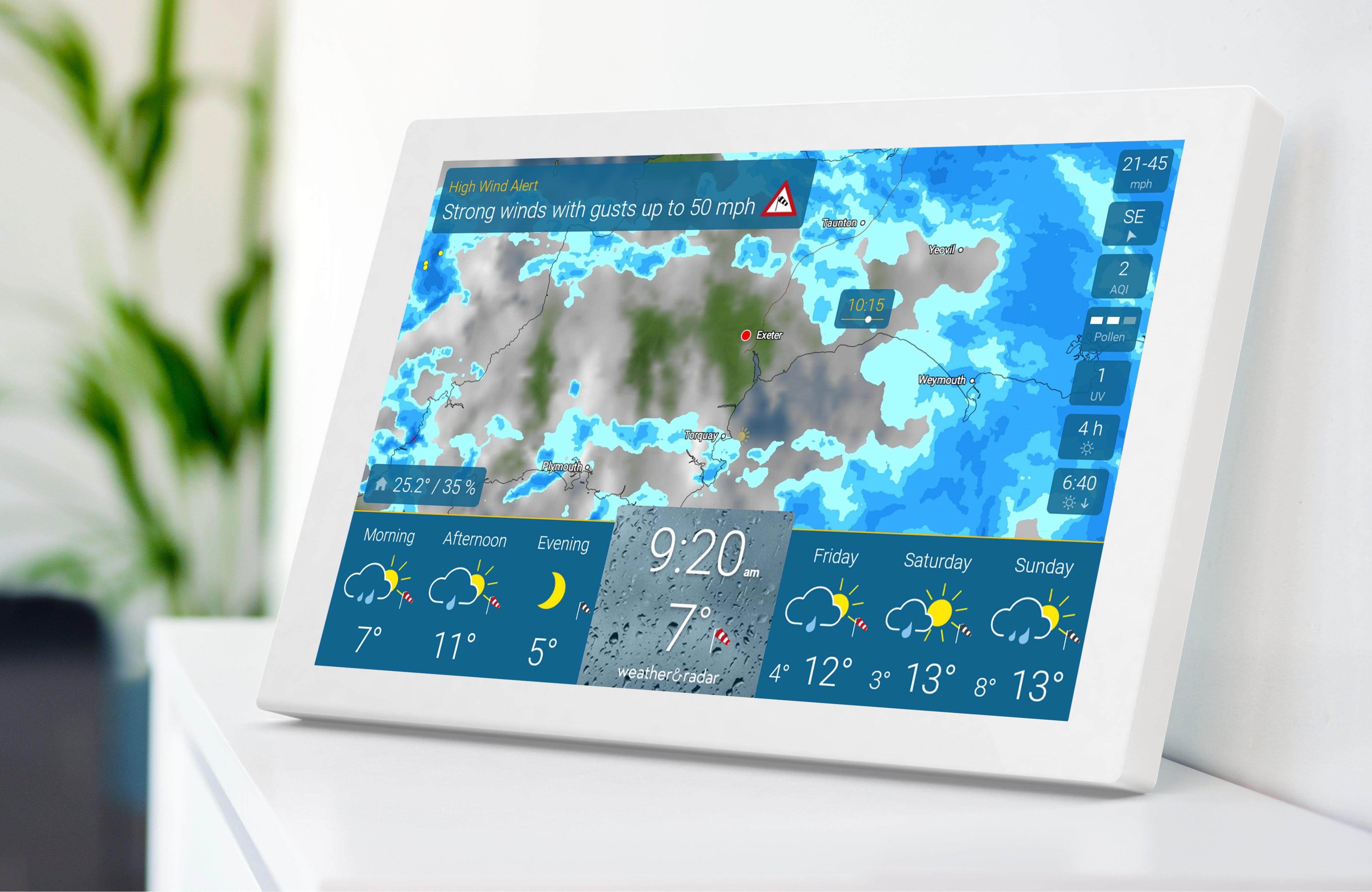 weather & radar home is designed for continuous operation. Customizable usage times, automatic retrieval of weather data and installation of software updates make the