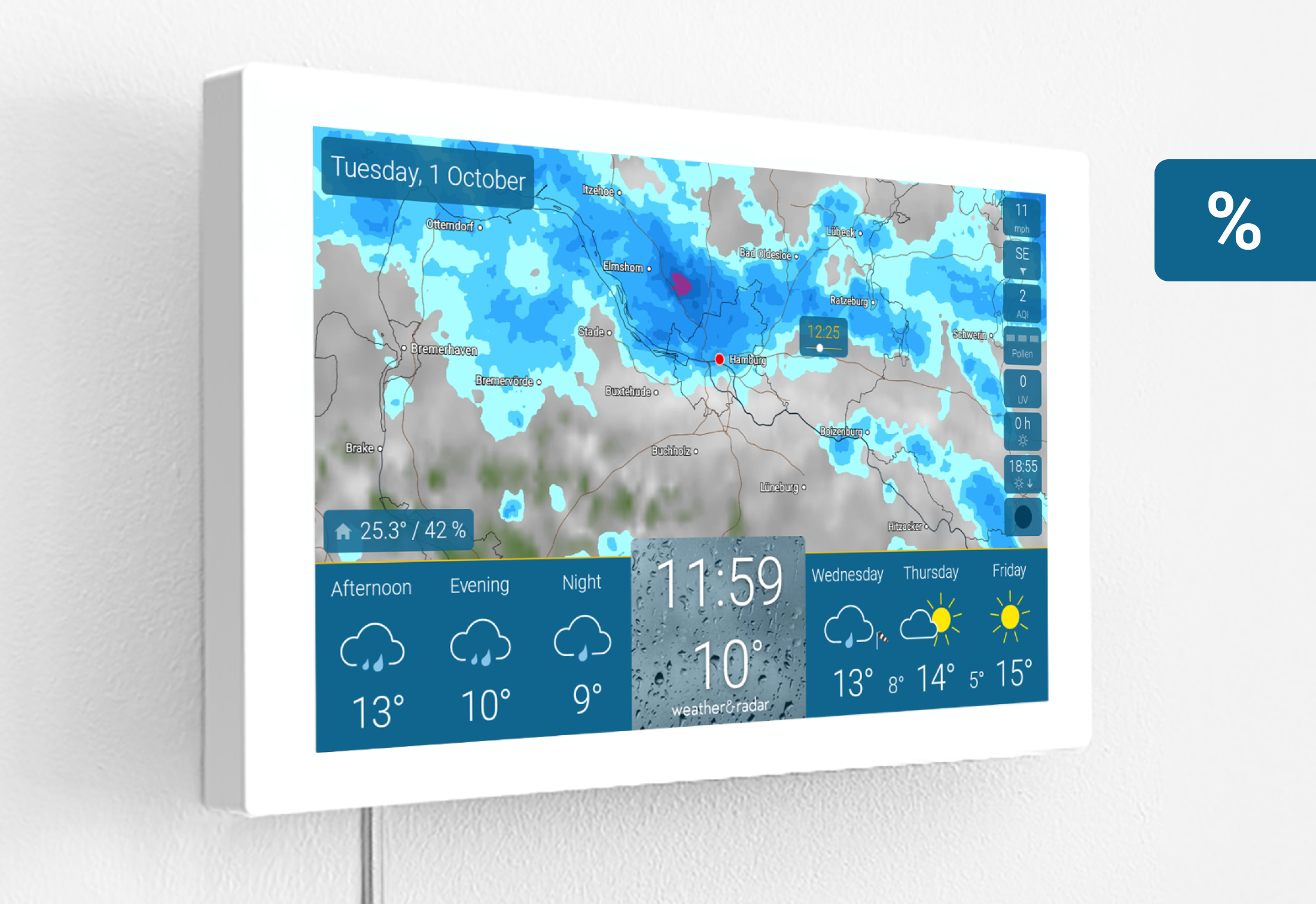 - Weather at eye level – thanks to a specially designed wall mount.