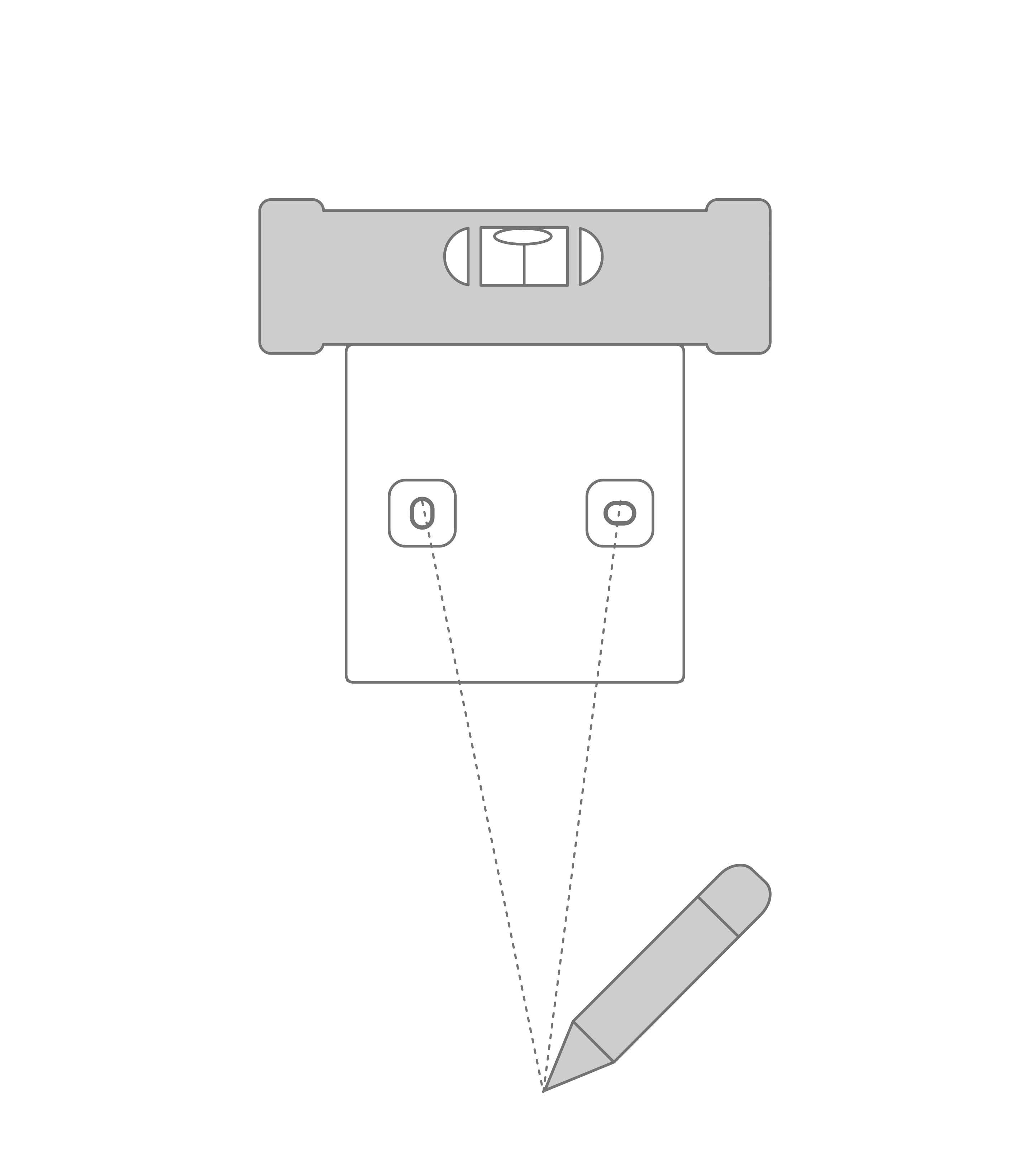 Juster vægbeslaget til den ønskede højde ved hjælp af vaterpasset og marker borehullerne.