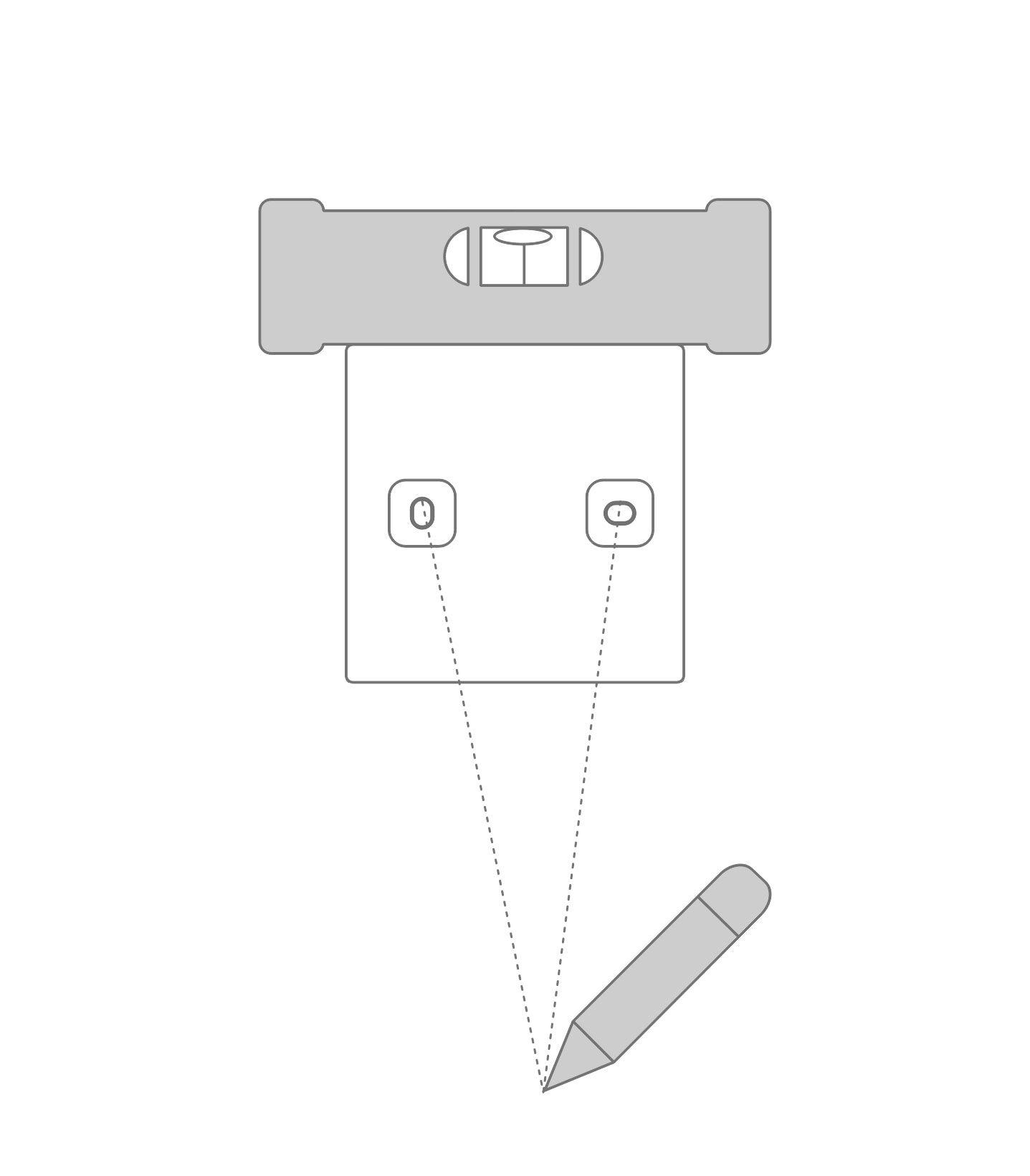 Pomocou vodováhy umiestnite nástenný držiak do požadovanej výšky a označte miesta na vŕtanie.